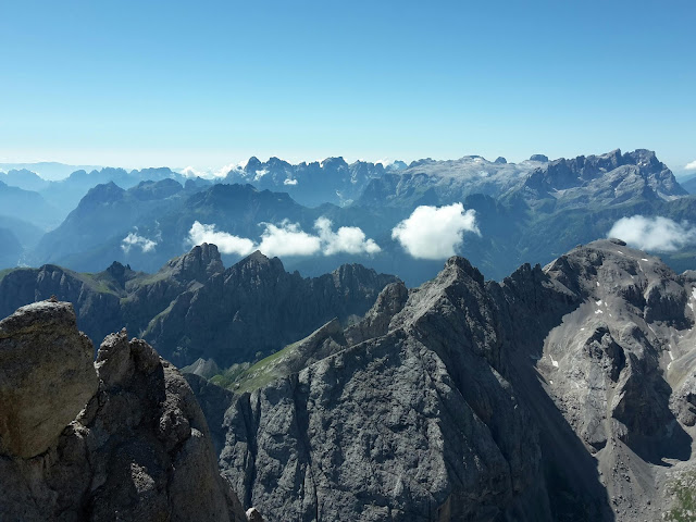 Bon ouch c'est 30 euros la montée donc la vue avait intérêt à être belle. Rien à redire elle l'est. Vous en profiterez pour visiter le fort de la Marmolada sensation forte façon via ferratta garantie. Quand on pense que des gars se battaient là il y a un siècle et que d'autre idiots aujourd'hui voudraient quitter l'Europe.